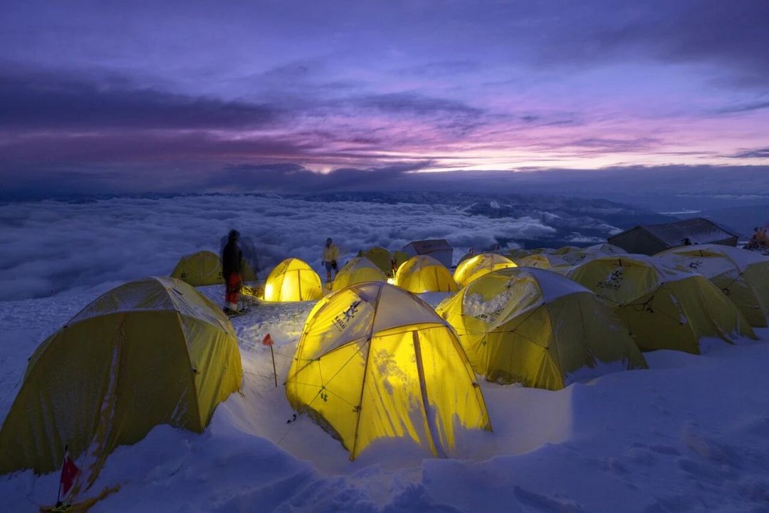 答:大本营队员帐篷为专门定制的珠峰同款宿营帐篷,1:1的队员可单独住一顶,1:2的队员两人一顶,帐内宽敞,可轻松站立,配备有地毯,床垫等;高营地帐篷为高质量高山帐,在C1,C2安排两位队员一顶;C3安排三位队员一顶帐篷。