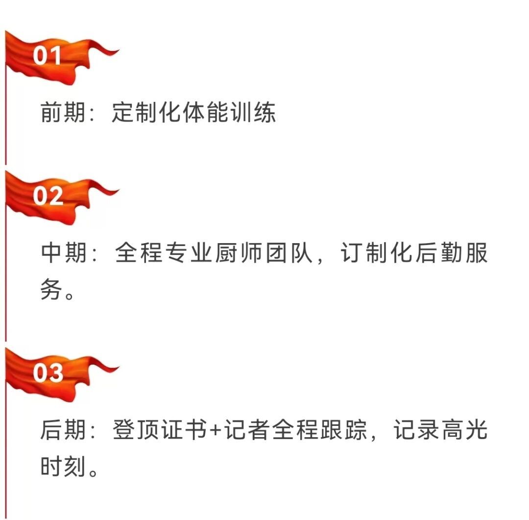 答:参与的海拔和技术难度不同的山峰有不同的训练计划,可以在报名活动时咨询项目负责人。