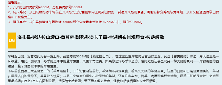 5、门票:日托寺门票、库拉岗日门票+环保费、羊卓雍措。