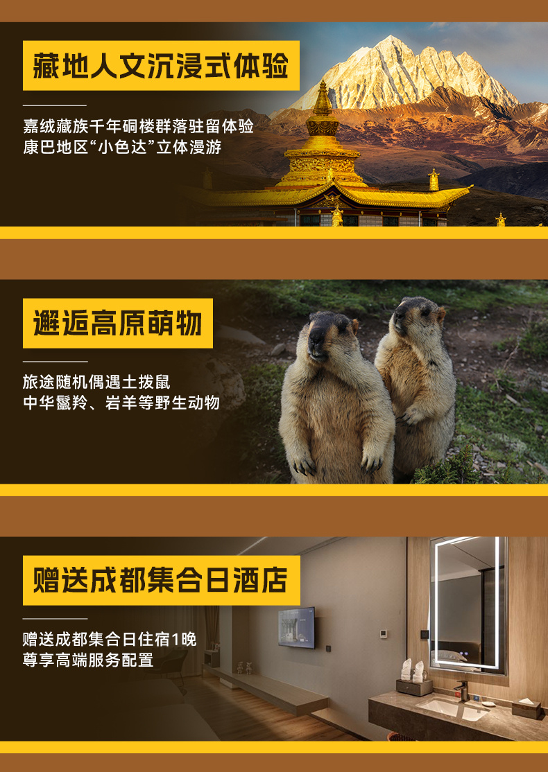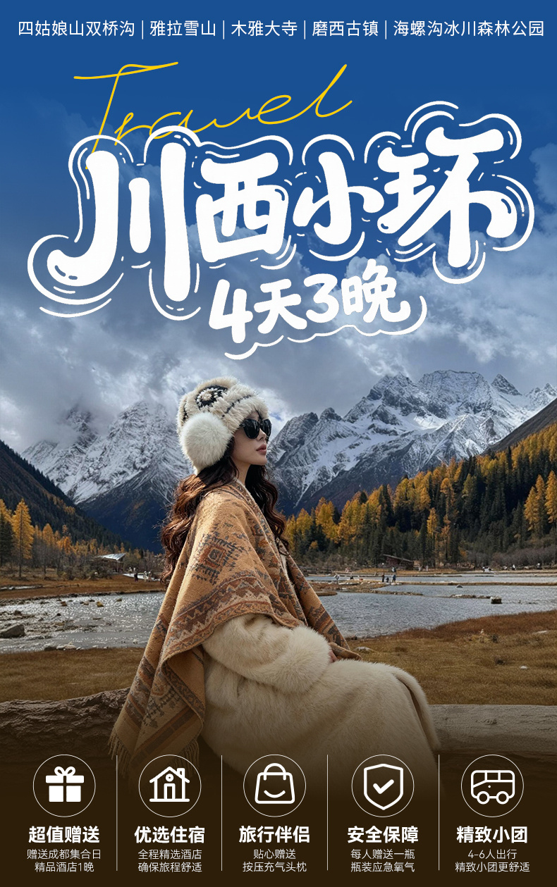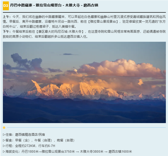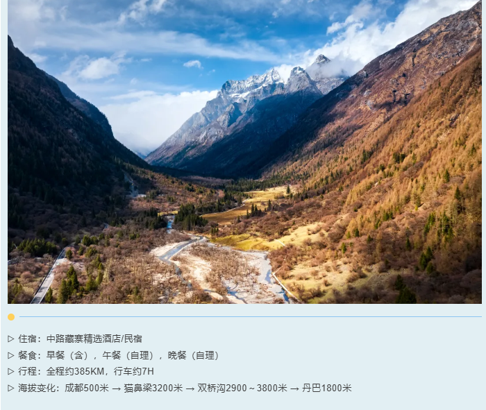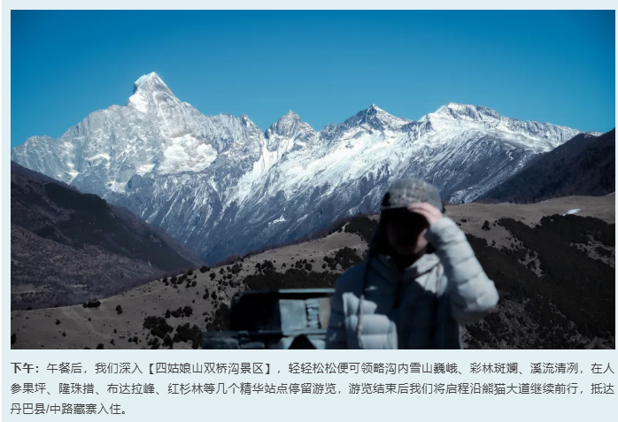 3、门票:四姑娘山双桥沟门票80元/人+观光车70元/人、木雅大寺男众区门票16元/人、海螺沟门票90元/人+观光车70元/人