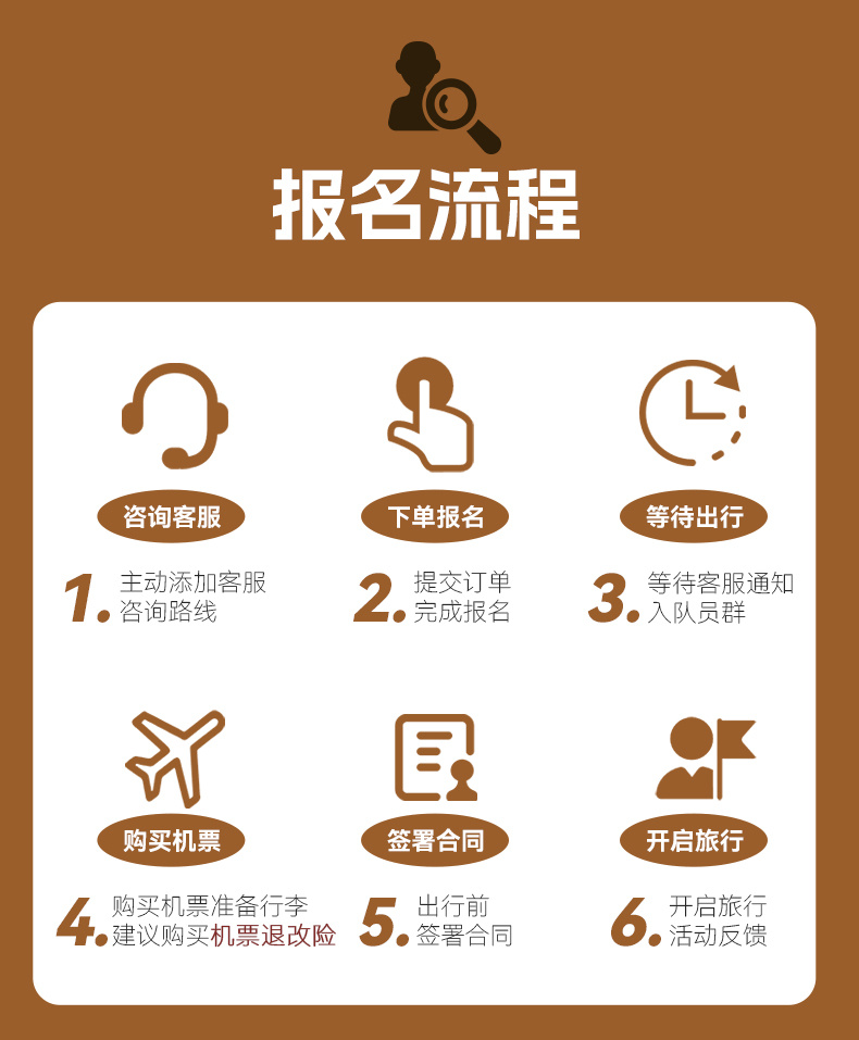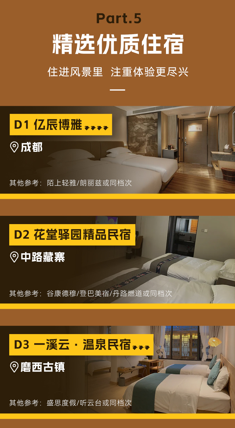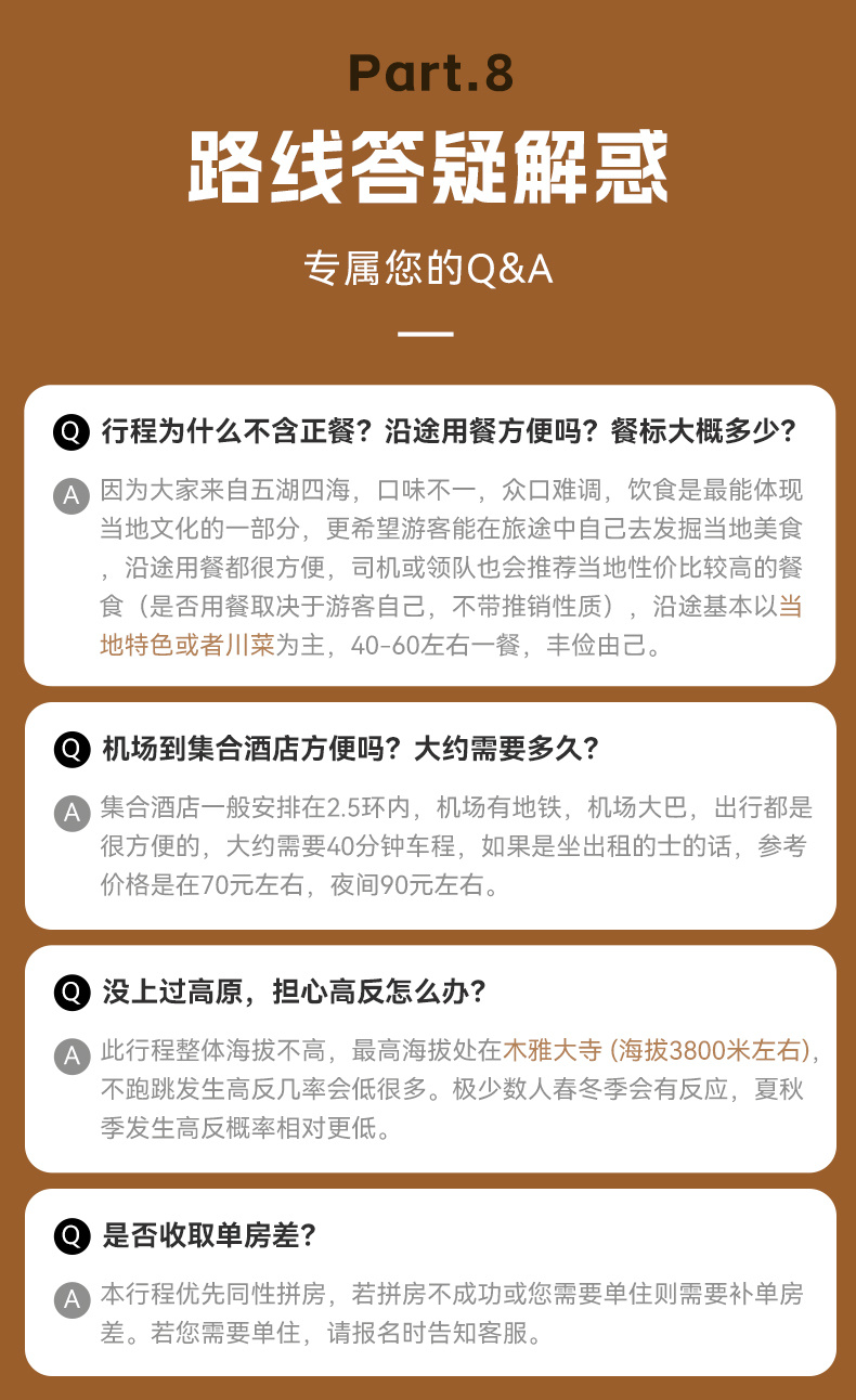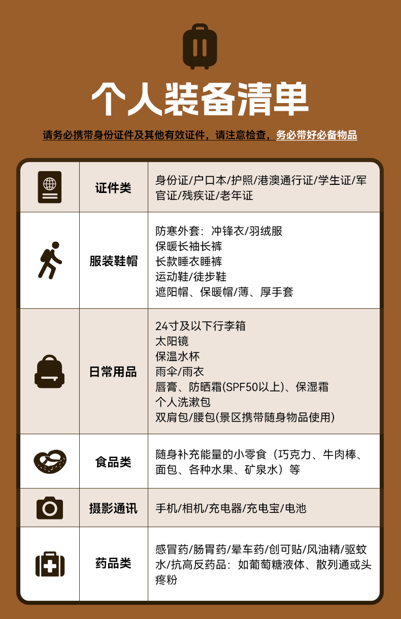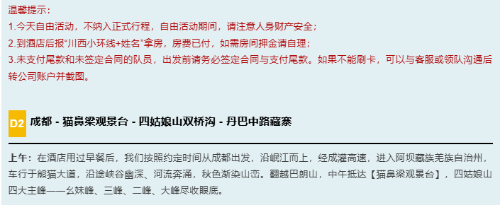 5、餐饮:全程含3早,正餐自理,由于途中就餐方便,队员口味不一,建议自理或者AA,也可以自备路餐零食。