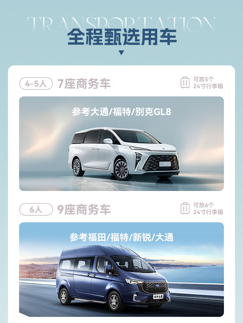①4-5人,7座大通/别克GL8/福特商务或同级