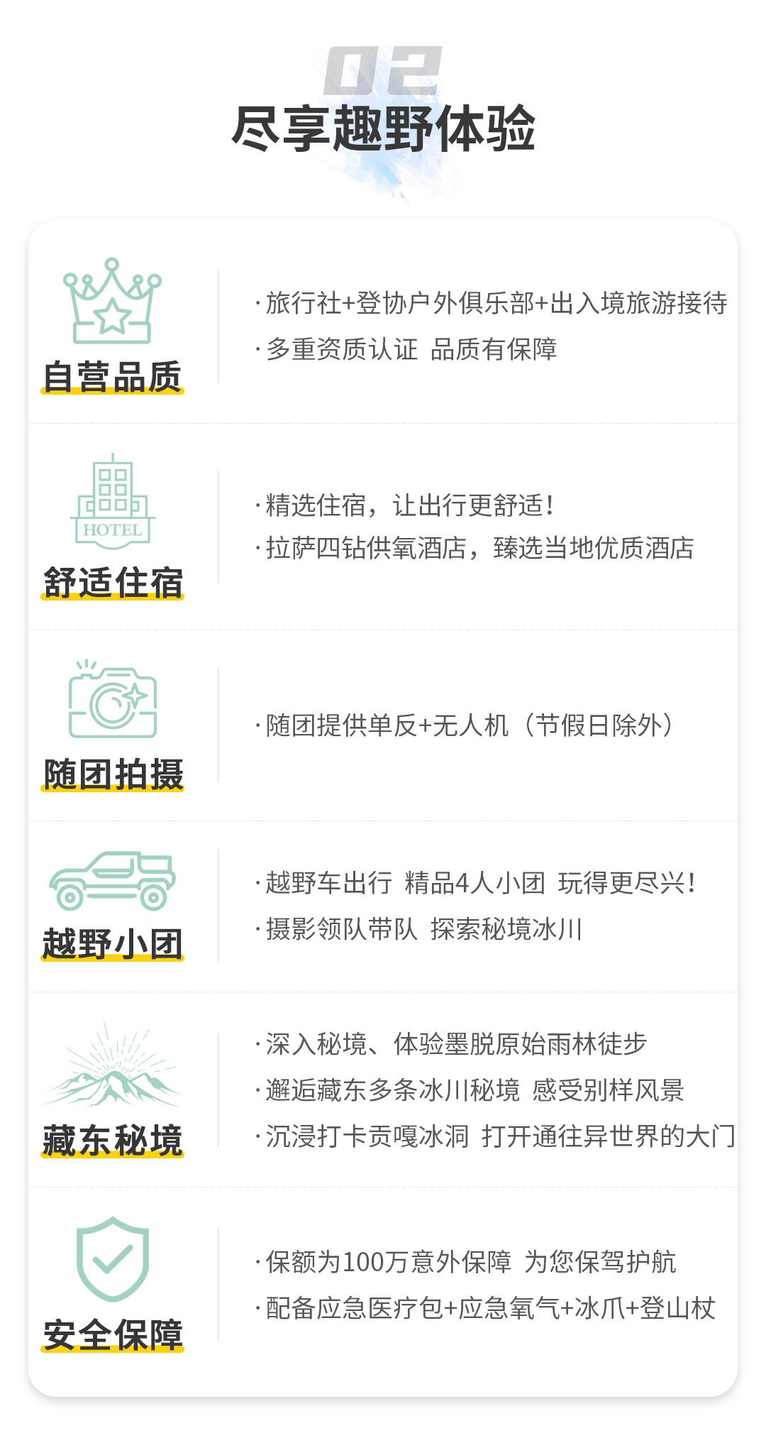 4、门票:白普龙沟徒步票/来古冰川门票;果果塘大拐弯;墨脱雨林徒步票;