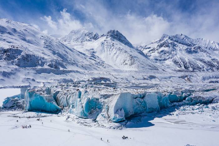 早餐后从波密出发,翻越5100米的垭口途径洛隆县,继续前往边坝县祥格拉冰川,这里可选择乘坐当地中转摩托车前往贡嘎冰洞(车费往返200元/人,需自理)而后前往祥格拉冰川,这里可以尽享古冰川世界的美景,零距离接触打卡蓝冰、冰壁,游玩后晚上入住边坝县城酒店。