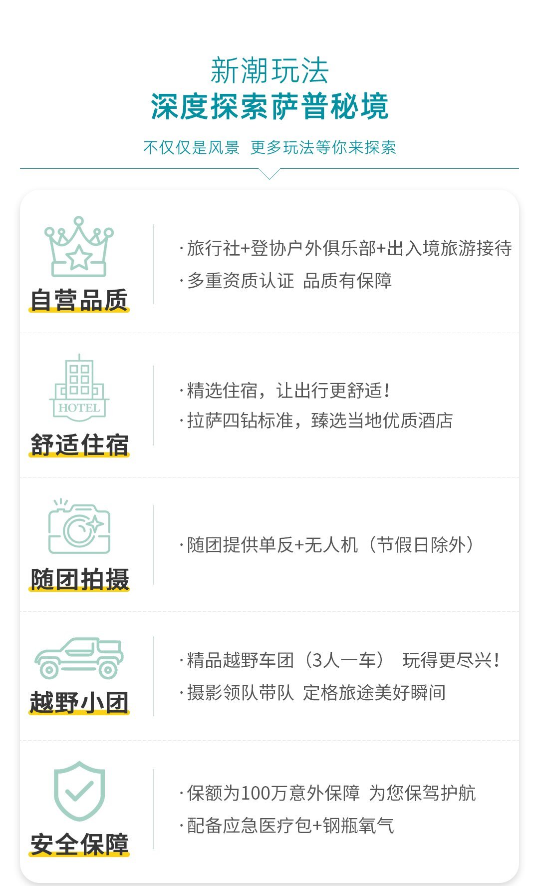 6、自营活动,品质保障。精品越野车团(3人一车),坐得更舒适,玩得更尽兴!