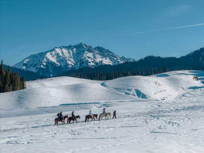 早餐后从昭苏县出发,踏入库尔德宁,仿佛进入了一个童话般的冰雪王国,银装素裹的森林,每一棵树都像是被大自然精心雕琢的艺术品,而骑马穿越这片森林,更是一种无与伦比的体验。行驶在这样的道路上,仿佛能闻到空气中弥漫的清新味道。这是一种远离城市喧嚣,亲近自然的美好感觉。离开库尔德宁,前往新源县办理入住。 餐饮:含早餐;午餐、晚餐自理 住宿:新源4钻酒店标间 海拔:约1500米 需时:行车约300km,约4.5小时左右 温馨提示:骑马为景区游玩项目,可自愿选择,骑马时请注意自身安全。