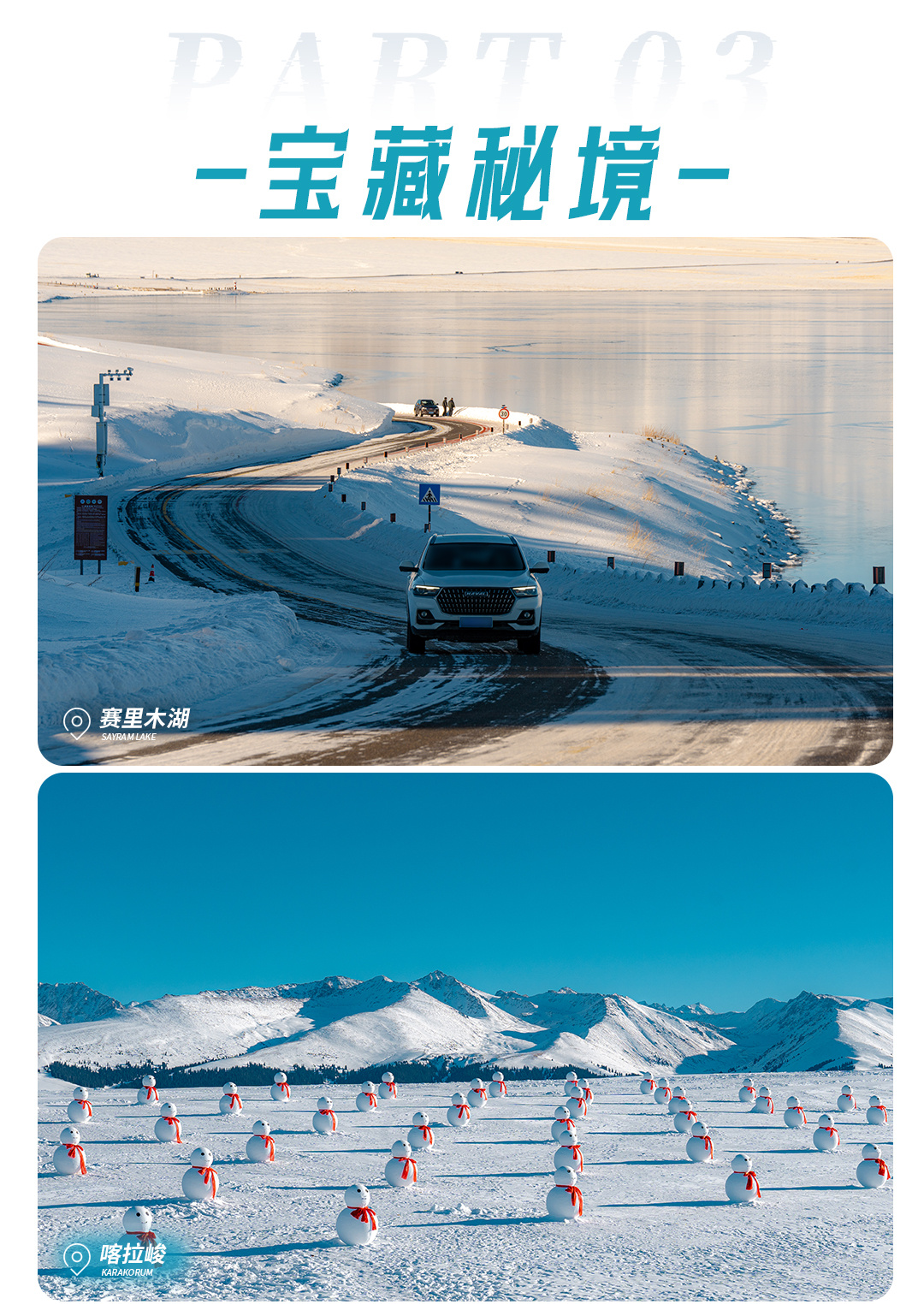 2、全程可打卡赛里木湖、那拉提、天鹅泉、库尔德宁、玉湖等著名景点。