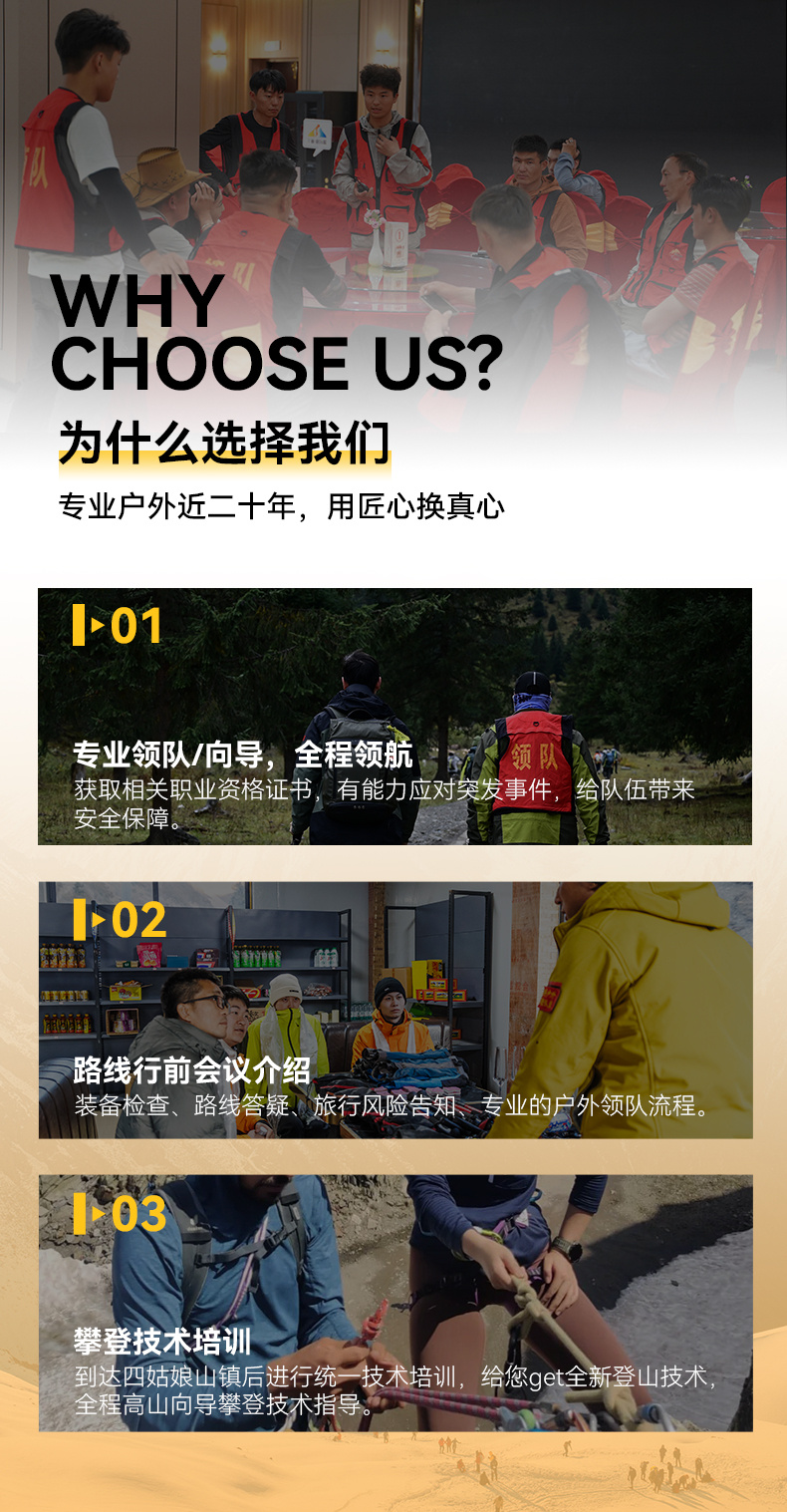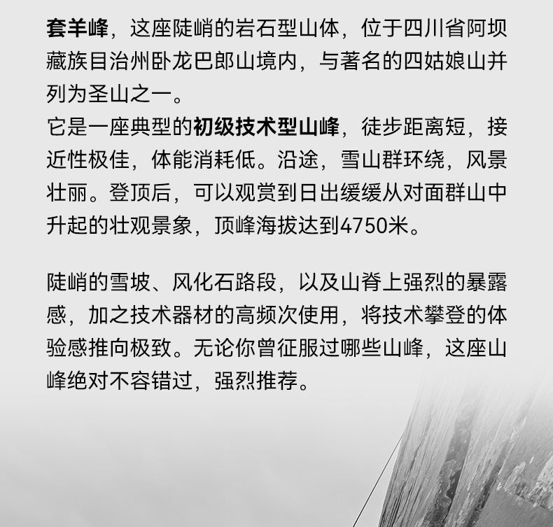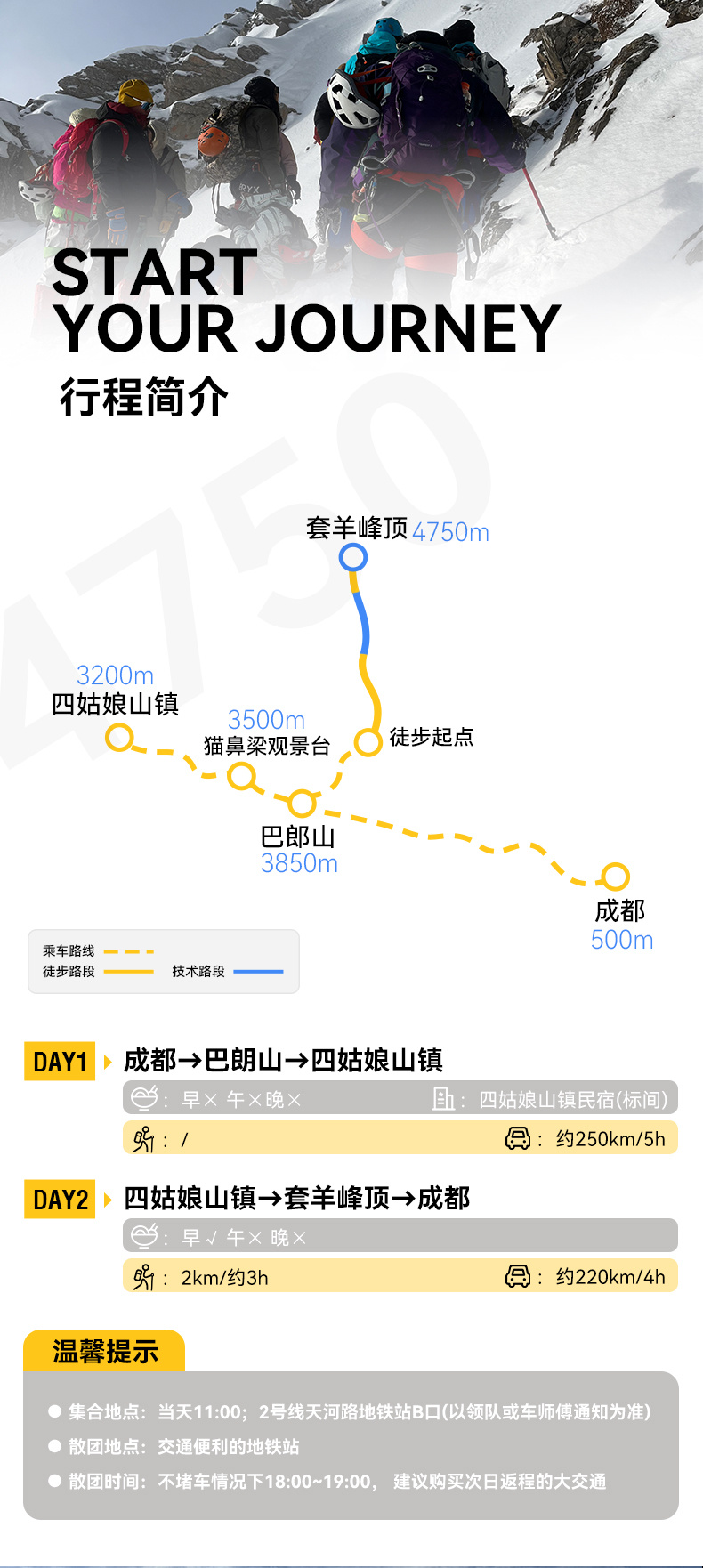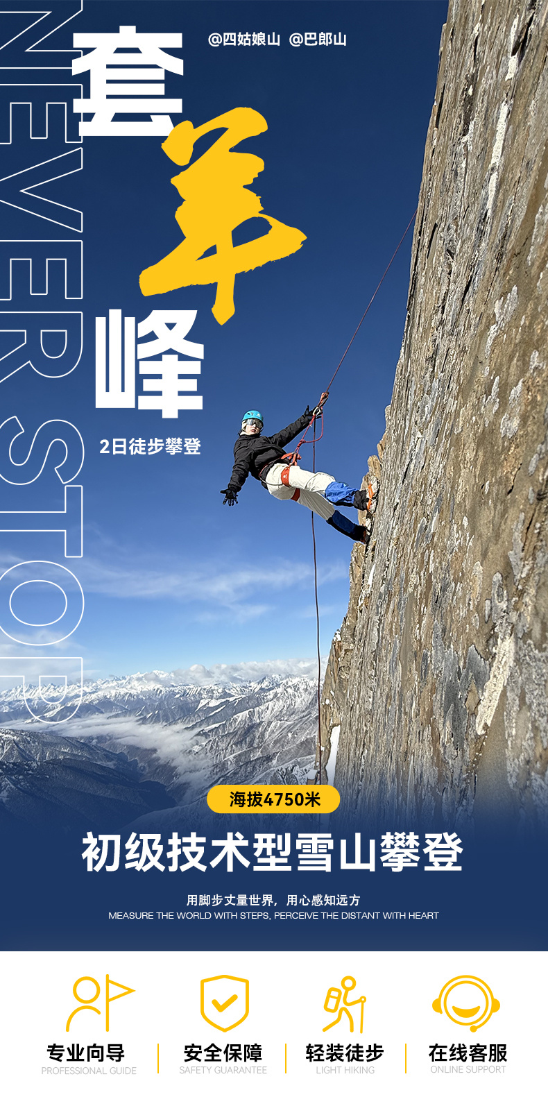 6.装备:个人全套登山技术装备(头盔、安全带、主锁、上升器、八字环或ATC)。