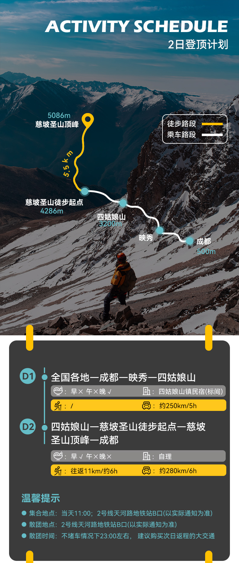 1.交通:成都往返根据人数选择合适车型,一人一座。