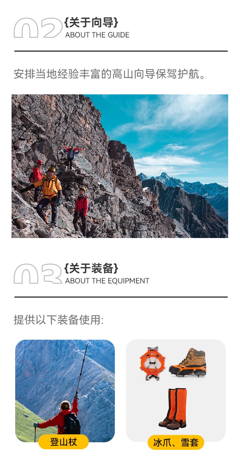 4.登山协作:户外专业认证领队和专业职业高山向导。
