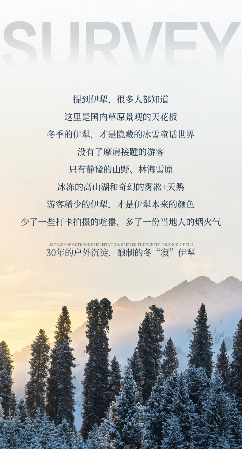 早餐后告别昭苏,前往世界自然遗产地【库尔德宁】。这里是雪岭云杉的故乡,冬季化身为巨大的水墨画。大家学习雪地徒步的节奏与呼吸技巧,领队带领大家探索一条更原始的徒步线路,穿行于雪岭云杉的原始森林中,地形起伏,雪深及膝,是真正的【林海雪原穿越】,最后到达【齐梦德观景台】,远眺【喀班巴依峰】,整个库尔德宁尽在眼底。