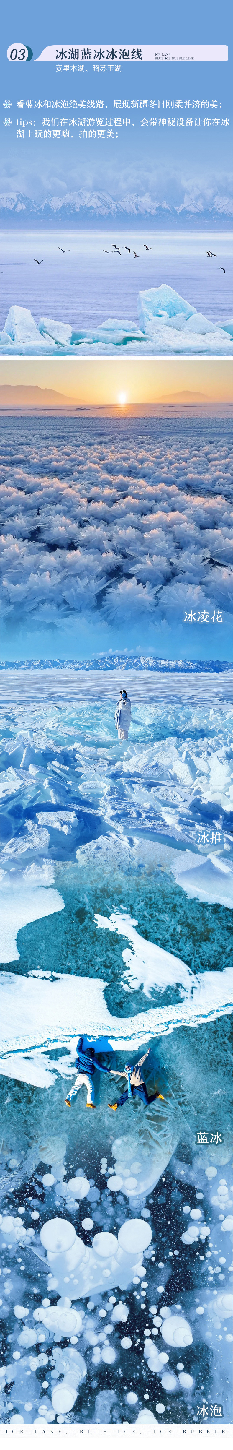 亮点:初遇冰封的赛里木湖,欣赏蓝冰、冰推、冰泡等奇观