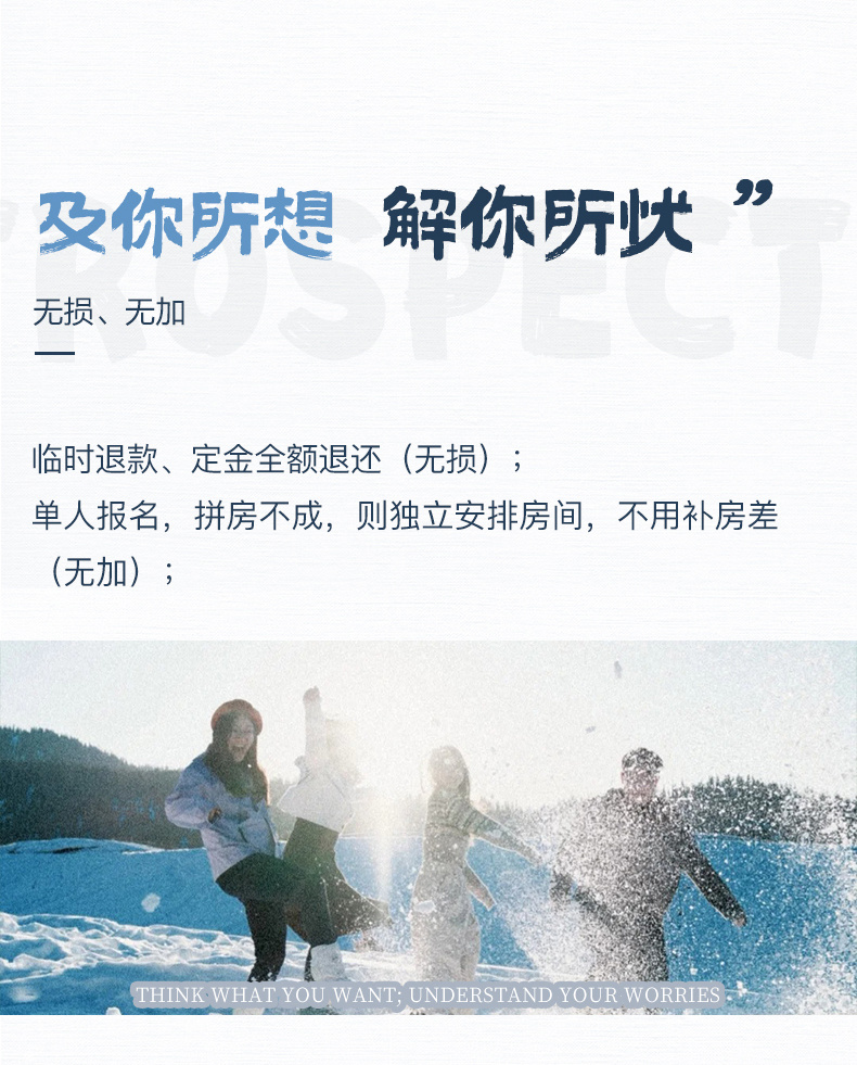 5、我们的活动保证纯玩无购物,如在活动进行中,因个人原因在景区、餐厅、体息区等地的购物场所消费,我们需要提醒您:理性消费并索要凭证,如产生消费争议,将由您与售卖商品的商家自行解决。