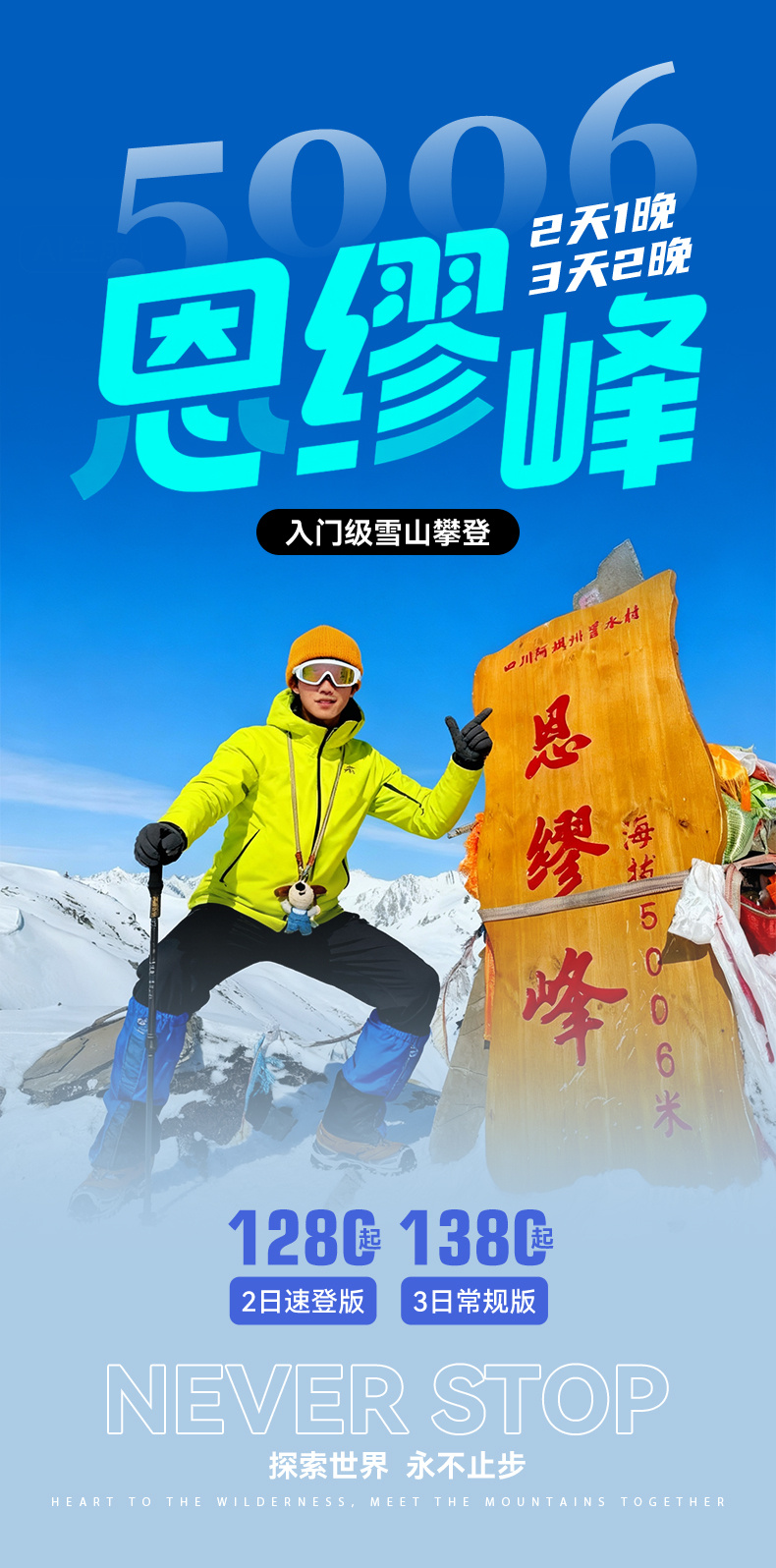 6.免费提供公共装备:睡袋,冰爪,雪套,头灯,登山杖*1。