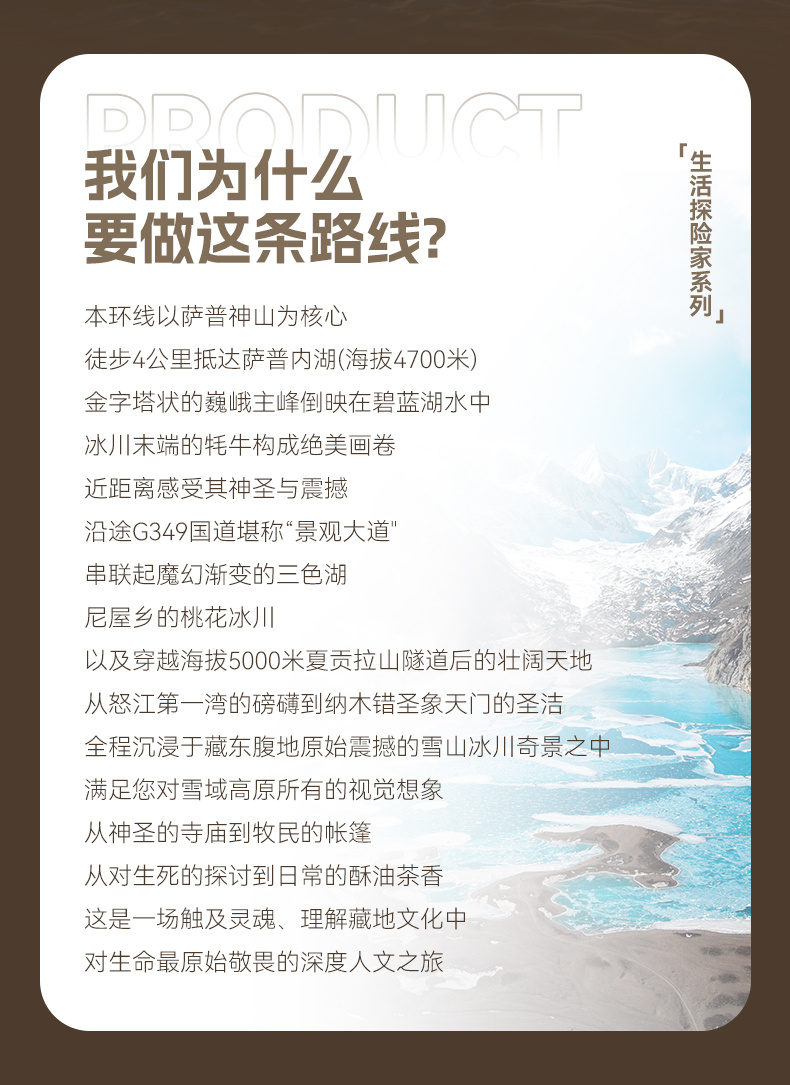 从尼屋乡的桃花冰川,到金岭乡的牧歌炊烟,穿越海拔5000m的夏贡拉山隧道,眼前豁然展开三色湖的魔幻渐变!祥格拉冰川,边坝县的酥油茶暖了风雪归人。G349国道才是真正的景观大道!