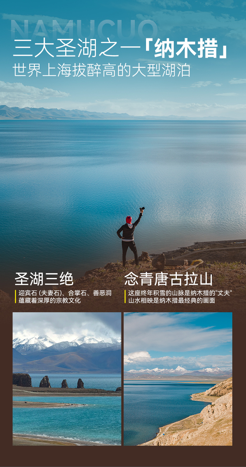 温馨提示:如遇大雪或景区管制,则圣象天门换成纳木错的扎西半岛景区。费用包含。