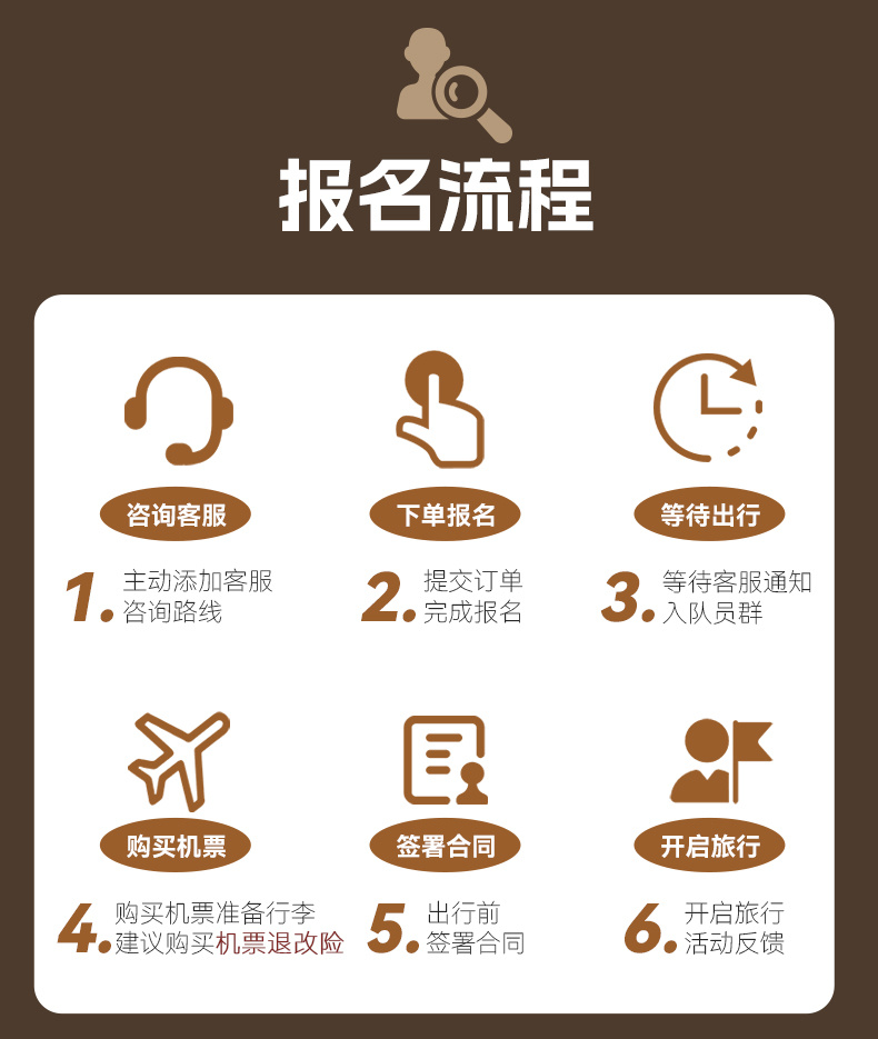 4、单房差:本行程不收自然单房差,如果队员要求自己全程住宿一间,则需要补单房差。