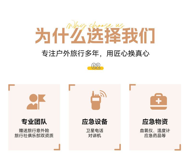 1.赠送100W专业旅游意外保险。
