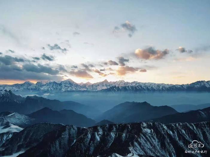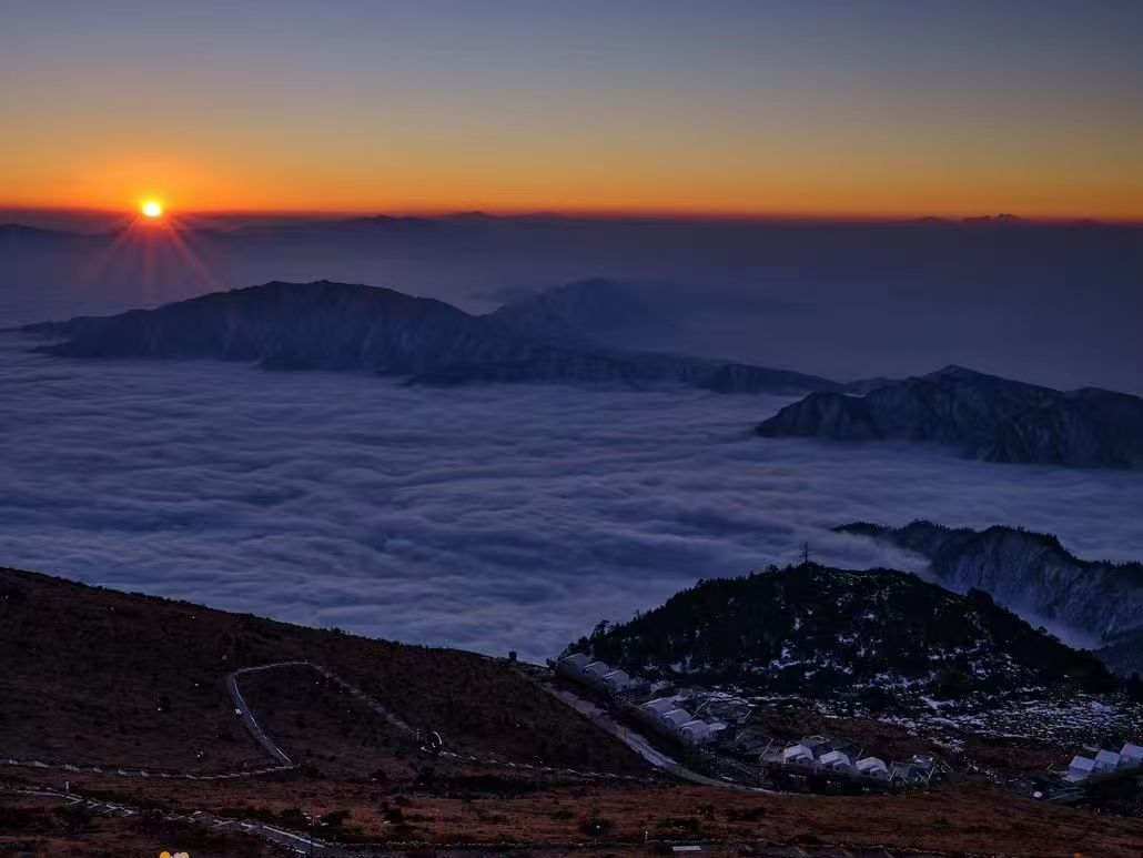 早餐后出发前往牛背山,途中会经过434机场网红公路,在这里也可以观贡嘎群山,驶在彩虹公路上,翻过折青绕垭口,中午时分路过康定,适时选择地方午餐。之后乘车前往长海子中转中心,这里换乘中转车后直达山顶平台,然后继续乘坐观光车到牛背山乾坤岭站(由于冬季牛背山景区部分道路积雪,乾坤岭到山顶有1.3Km,可选择徒步或自费 utv(自愿选择);入住营地之后,大家可以前往观景台,360°无死角的观景平台之中,每一眼都是云海之上的奇迹,彼岸的贡嘎群山宣示着蜀山亘古的壮美。